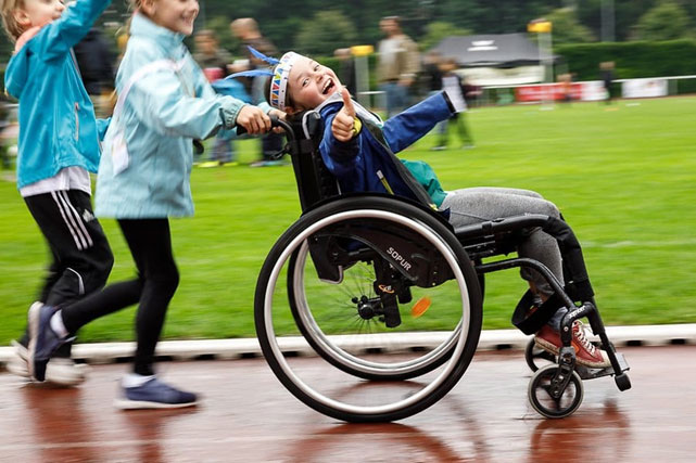 Aus der Olympiade ist längst ein Kindersportfest geworden, bei dem weit mehr als 40 Sportarten ausprobiert werden können – auch Sportarten für Menschen mit Behinderung wie Rollstuhlbasketball. Inklusion ist dem Verband so wichtig wie Integration.