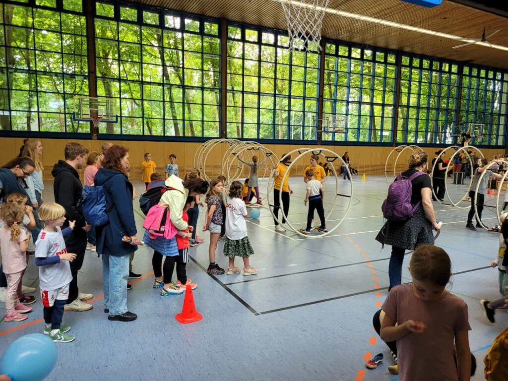 Die Sonne strahlte und zog tausende Kinder mit deren Freund/innen und Familien auf das Gelände der Deutschen Sporthochschule Köln. Dort bot sich eine Großzahl an sportlichen Mitmachangeboten von Vereinen, Verbänden & Anbieter/innen aus dem Kölner Raum. Ein Rennen mit Laufrädern, organisiert von der Hockey-Olympiasiegerin Marion Rodewald, war erneut eines von vielen Highlights. Aber auch Angebote wie Triathlon des MACH3 Köln e.V. oder der Turnspieleparcours des Turnverband Köln begeisterten die Besucher/innen. Dank unserer „Inklusianer/innen“ konnten viele Sportangebote von Kindern mit und ohne Behinderung ausprobiert werden. Jedes Kind konnte dabei sein und sich austoben!